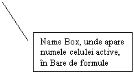 Numele celulei active este afisat în stânga Barei de formule, în Name