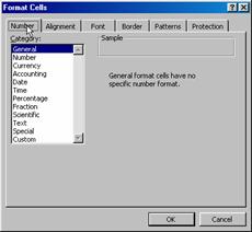Meniul Format/Cells.