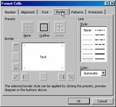 formatari posibile. Prima categorie Number ofera posibilitatea de a stabili ce fel de date for fi suportate de celule în momentul editarii datelor. A doua categorie Alignment ofera posibilitati de aliniere si orientare a textului si datelor în interiorul celulei. A treia categorie Font ofera posibilitati de formatare a textului, categoria Border ofera posibilitati de formatare a conturului tabelului. De retinut ca aliniamentul initial al paginii este un marcaj netiparibil, deci daca se vrea ca tabelul sa aiba un anume aliniament (grilaj) acesta trebuie introdus de catre utilizator.