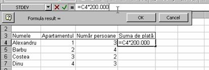 cum apare în figura 4 unde celula C1 contine o formula de calcul al