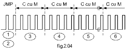 Sa consideram cazul în care o instructiune de salt - JMP - este urmata de executia unei alte instructiuni pe un total de 70 - 77 stari, asa cum rezulta din figura 2.04. Succesiunea activitatilor desfasurate de BIU si EU sau notat cu: