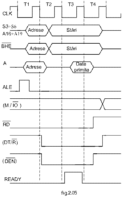 Pe frontal ridicator al tactului CLK (din T3) se verifica intrarea READY.