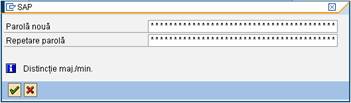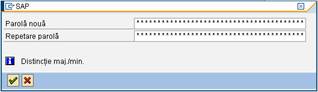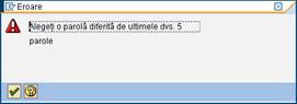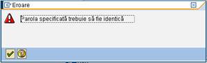 Obs.: - daca parolele introduse in cele 2 campuri difera sistemul informatic SAP atentioneaza utilizatorul prin mesajul de eroare de mai jos