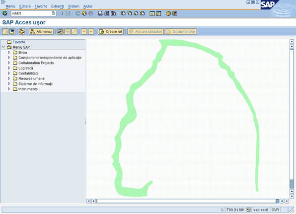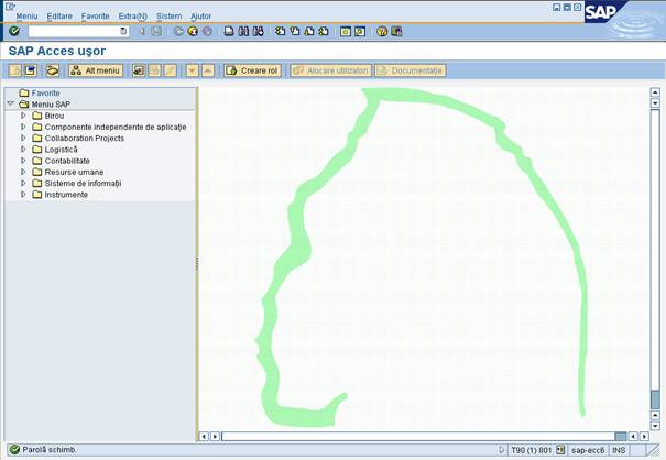 Pentru a se conecta in mod curent in sistemul informatic SAP utilizatorul va efectua in ordine pasii 1 ÷ 5 definiti mai sus, ceea ce are ca efect intrarea in sistemul informatic SAP cu prezentarea meniului principal.