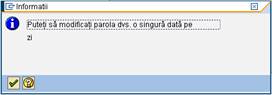 Din motive de securitate, totusi, administratorul de sistem poate cere utilizatorului sa isi modifice parola periodic (la intervale regulate), de exemplu, la fiecare 30 de zile. In acest caz, utilizatorul va primi din timp un mesaj de la sistemul informatic SAP referitor la momentul pana la care parola trebuie modificata.
