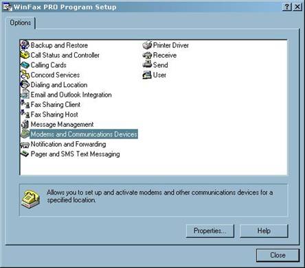 Tools > Program Setup > Modems and Communication Devices (double click)