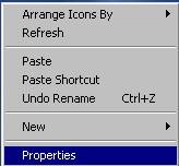 Pentru afisarea optiunilor de reglare a carcateristicilor desktop-ului, se da click dreapta la mouse si se selecteaza optiunea Properties (Proprietati).
