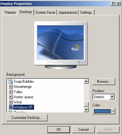 Figura 12. Fereastra de proprietati a desktop-ului (Display Properties