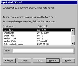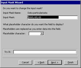 14. Se creeaza un sablon particularizat care sa poata fi folosit cu Input Mask Wizard
