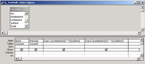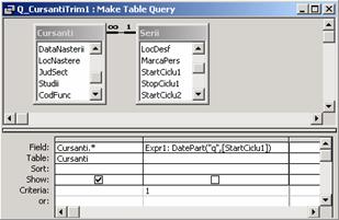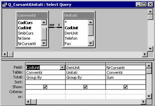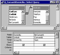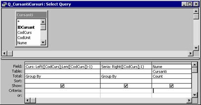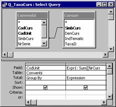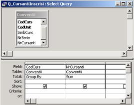 Se creeaza interogarea Q_CursantiInscrisi (pentru subraport)