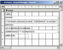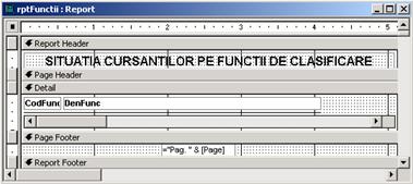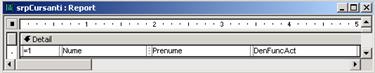 Se creeaza raportul principal rptFunctii pe baza tabelului Functii (subraportul srpCursanti se īncorporeaza īn raportul principal srpFunctii
