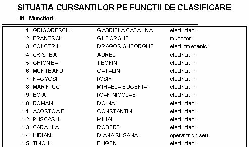 Situatia cursantilor pe functii de clasificare |