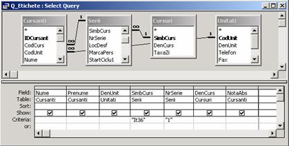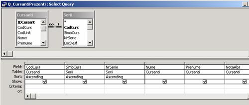 Se creeaza interogarea Q_CursantiPrezenti (pentru raportul principal)