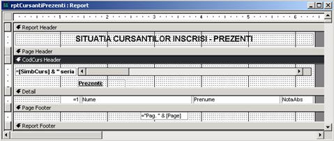 Se creeaza raportul principal rptCursantiPrezenti