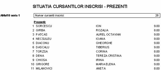 Situatia cursantilor inscrisi - prezenti |