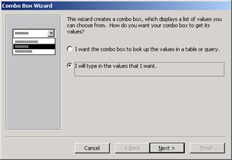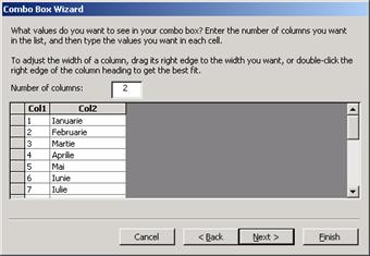 Īn forma se adauga un control Combo Box (cu Control Wizards