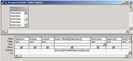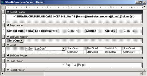 Raportul va contine cursurile care īncep īntr-o anumita luna (luna va fi selectata dintr-un control Combo Box plasat īntr-o forma).