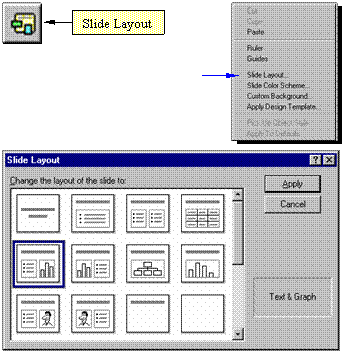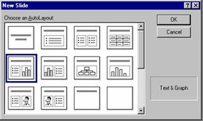 continuare se va alege formatul diapozityivului (Choose an AutoLayout) din caseta New Slide (prezentata in mai jos).
