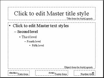Pentru a avea o prezentare cu un aspect unitar se poate apela un sablon din cele create deja, puse la dispozitie, si care eventual se poate ajusta. Un astfel de sablon contine o schema de culori si formatul general al diapozitivelor din prezentare. Un sablon tip, numit Slide Master, ales din cele puse la dispozitie se poate modifica. "Diapozitivul" Slide Master, nu este de fapt un diapozitiv concret ci doar un model pentru toate diapozitivele prezentarii. Orice obiect sau format inclus in Slide Master, va avea ca efect atasarea acestora tuturor diapozitivelor prezentarii.