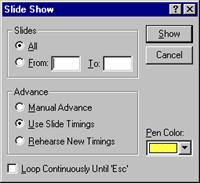 automat utilizand cronometrul (Use Slide Timings) care a inregistrat candva (Rehearse New Timings) momentele prezentarii.