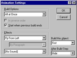 Aparitia obiectelor se poate seta utilizand bara de instrumente de animatie activata prin butonul alaturat (Animation Effect).