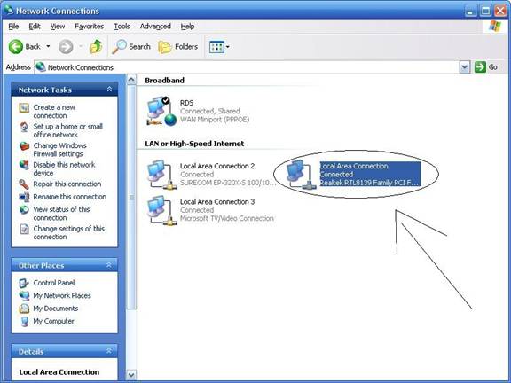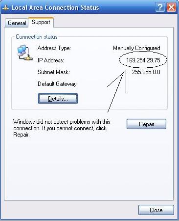 Atentie celor cu Windows XP service pack 2. In caz ca va apre o Icoana cu un semnul exclamarii pe el in loc de IP, apasati pe butonul Details si va aparea IP-ul.