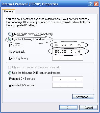Dati Click pe Use following IP address .si introduceti un nou IP ca cel de mai sus.care sa inceapa cu 169.254. Celelalte 2 campuri.puteti sa le completati cu ce doriti (atata timp cat nu da conflict de IP uri pe WAN.putetzi pune orice)