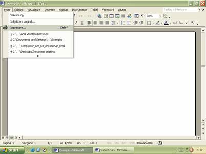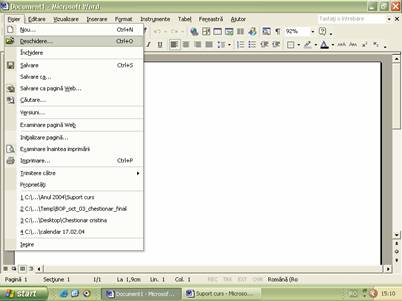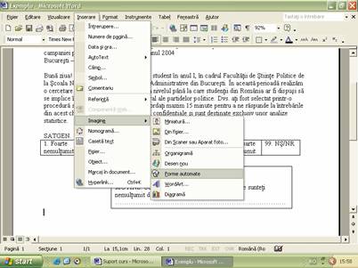 plasat cursorul de scriere la momentul respectiv cu comanda "Lipire" din