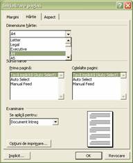 c. Calitati posibile la imprimare d. Orientari posibile ale hârtiei