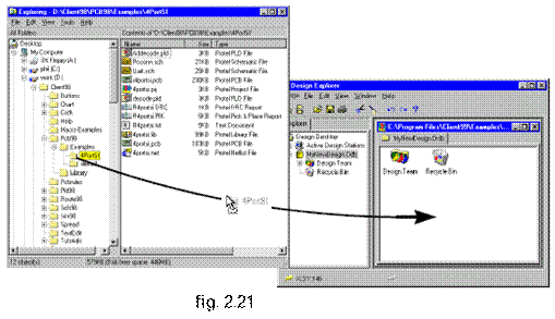 Nu conteaza care system de stocare este ales, modul in care lucrati in Design Explorer este acelasi. Daca proiectarea dvs. se foloseste de tipul de stocare Windows File System tot deschideti proiectul întâi-dupa aceea schemele, PCB sau alte documente. Daca nu puteti muta documentele într-o baza de date Windows File System cu ajutorul Windows File Explorer, ele trebuie importate intr-o baza de date înainte sa fie deschise. Puteti importa un numar de fisiere prin importarea unui folder sau "tarandu-le" din Windows File Explorer direct intr-o proiectare deschisa.