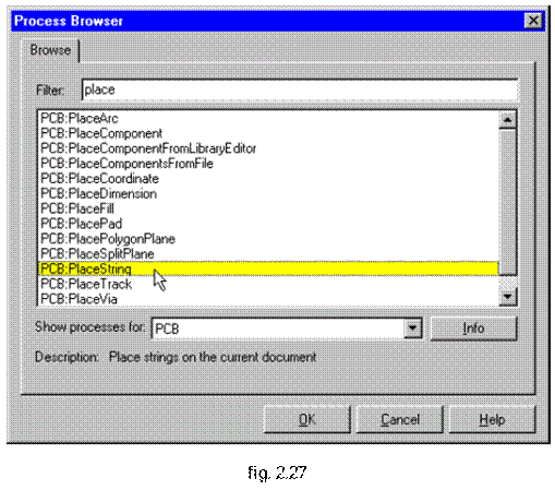 Orice actiune sau operatie care e realizata in DE este realizata de un proces. Când selectezi File - Save din meniu, procesul save Document este lansat. Selectând Place -Wire din Advance Schematic se lanseaza Place Wire process, cu care interactionezi ca si cum ai plasa firul (cablul) pe foaia de lucru.