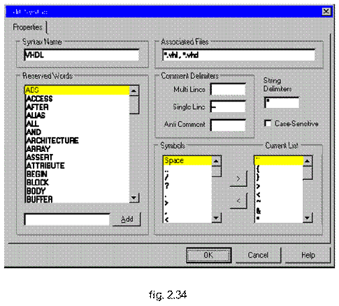 Pentru fiecare limba, exista un set de sase tipuri de identificatori de sintaxa valabila ; cuvinte rezervate, simboluri, caractere, numere, comentarii si identificatori. Poti defini setul de cuvinte valide sau caractere pentru fiecare din acesti identificatori si sa atribui o culoare unica pentru fiecare tip de identificator.