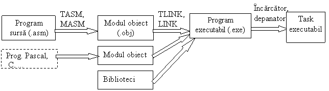 În figura 1 s-a indicat secventa de pasi necesari pentru editarea compilarea si executia unui program scris 11311j918l în limbaj de asamblare.