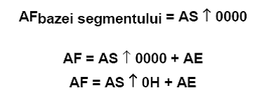 -adresa fizica a bazei unui segment se face inmultimn cu 16 baza AS iar apoin in interiorul segmentului pozitionarea se face adunand AE la el