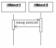 UML permite si reprezentarea de mesaje intre obiecte care sunt active in fire de executie diferite. Intre astfel de obiecte pot fi trimise mesaje sincrone sau asincrone.