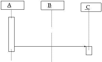 "Scenariul incepe cu un obiect A care trimite un mesaj X unui obiect B. Acesta trimite un mesaj Y obiectului C care-si trimite un mesaj Z."