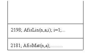 Controlul va fi apoi preluat de catre procedura AfisMat, care intra în ciclul pentru de la linia 2197, dupa care întâlneste apelul:
