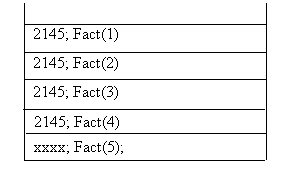 Pentru a realiza înmultirea respectiva, trebuie ca întâi sa se calculeze Fact(n-1). Cum n are valoarea 5, pe stiva se va depune Fact(4). Abia dupa ce valoarea lui Fact(4) va fi calculata se poate calcula valoarea lui Fact(5). Calculul lui Fact(4) implica însa calculul lui Fact(3), care implica la rândul lui calculul lui Fact(2), Fact(1). Calculul lui Fact(1) se realizeaza prin atribuire directa, fara nici un apel recursiv, în linia 2143:
