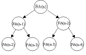 Din figura de mai sus se observa ca anumite valori ale sirului lui Fibonacci se recalculeaza de mai multe ori. Fib(n) si Fib(n-1) se calculeaza odata, Fib(n-2) se calculeaza de doua ori, Fib(n-3) de 3 ori s.a.m.d. Exercitiul 2 de la finalul acestui capitol va invita sa descoperiti de câte ori se calculeaza fiecare valoare Fib(k).