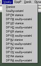 Aceasta functie a meniului principal are cāteva optiuni: "Statii″ (aici se īncadreaza statiile de distributie din zona respectiva) si "Suma+celelalte″ (aici se īncadreaza suma transformatoarelor..) apoi se īmparte pe zone individuale (DP Frżdek-Mķstek, DP Hodolany, DP Krnov, DP Novż Jičķn, DP Ostrava a DP Rįječek).
