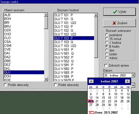 Se afiseaza aceeasi fereastra ca la prima selectare a graficelor, valorii, a tipului valorii afisate si a datei. (fig 2 - Selectarea esantionului).