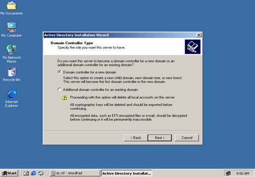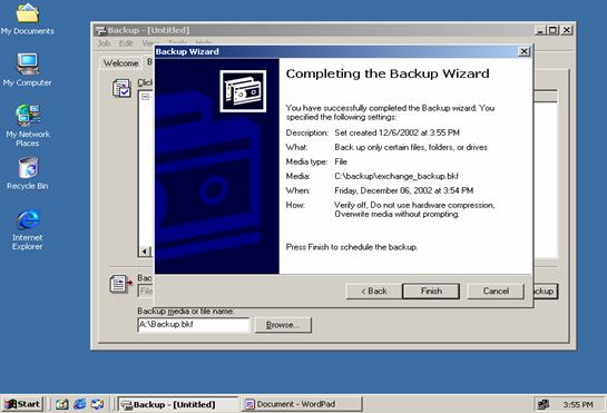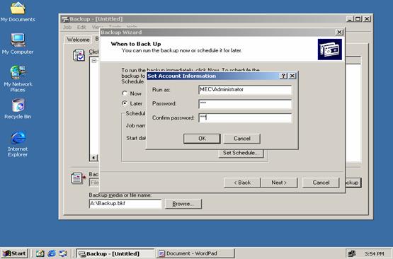 Procedura de backup este foarte importanta întrucât în caz de urgenta se poate reface configuratia foarte usor sistemului.Pentru aceasta folosim utilitarul din Windows 2000 Server si anume 'Backup Utility' astfel: