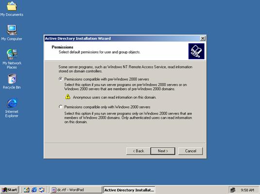 Dupa cum se vede în meniul de mai sus,în fereastra 'Permissions', se pot stabili drepturi care se pot propaga la nivelul tuturor obiectelor din ierarhia respectiva,atât la nivel de director cât si la nivel de creare de obiecte în directorul respectiv.
