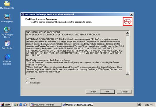 Astfel 'SMTP Virtual Server II' receptioneaza mesajele din Internet,care are adresa lui de IP asociata în înregistrarea DNS MX a ISP-ului respectiv.Când acest server receptioneaza mesajele Exchange 2000 foloseste Active Directory pentru a localiza serverul local si ruteaza mesajele catre primul serverul virtual 'SMTP Virtual Server I'.