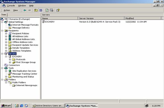 - 'Monitoring and Status' este specific Exchange 2000 si are doua console ce se pot vizualiza în Exchange System Manager' si anume:'Notifications' si 'Status'. Primul este pentru trimiterea avertizarilor iar cel de-al doilea pentru evenimente critice ce afecteaza functionarea corecta a programului.