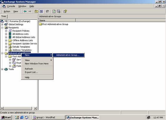 La prima instalare Exchange 2000 creaza automat un grup de rutare numit 'First Routing Group'.La transferarea mesajelor între servere din acelasi grup de rutare Exchange 2000 ruteaza email-urile direct de la sursa la destinatie.