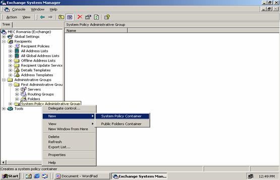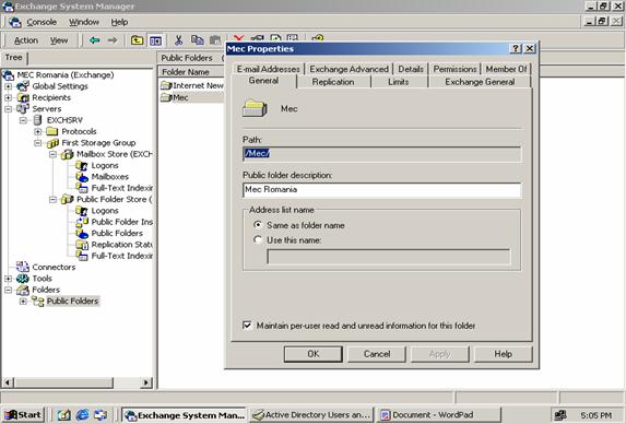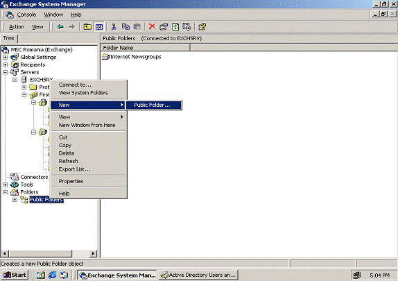 Directoarele publice sunt o parte integranta din majoritatea sistemelor de email.Ele sunt niste containere care contin diferite tipuri de informatii ce pot fi accesate de toti userii din organizatia respectiva.Se pot creea aceste 'Public Folders' atât din consola de administrare 'System Manager' cât si din clientul de mail ca de exemplu Microsoft Outlook 2000,daca exista drepturi.