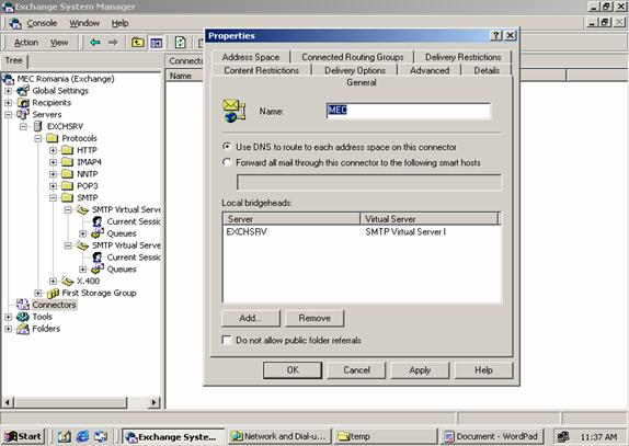 - serverul sursa ('sender') ce ruleaza cu Exchange 2000 trasfera mesajul folosind SMTP conector catre un 'bridgehead server' definit în conectorul respectiv din acelasi grup.