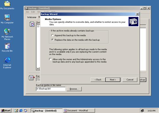 - Start-Programs-Accessories-System Tools-Backup Wizard-Next.