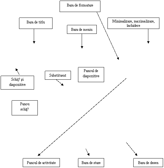 Bara de stare - apare īn general īn parte de jos a ecranului. Arata numarul diapozitivului afisat, numarul total de diapozitive numele formei diapozitivului īn uz sau numele fundalului.